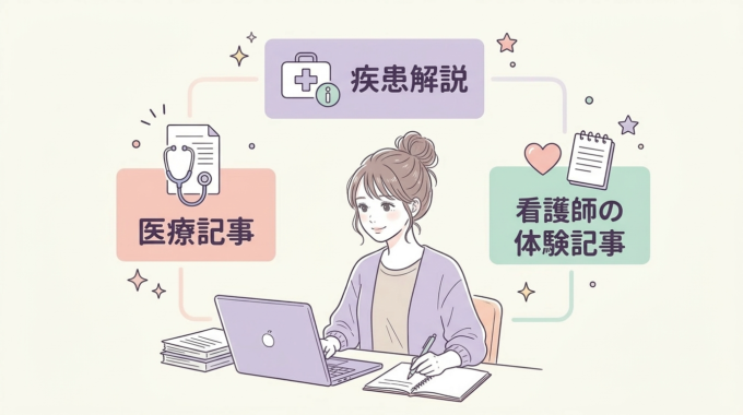 看護資格と経験だけで書けるのは、一般向けの医療情報や疾患解説、健康習慣などを説明するような記事です。